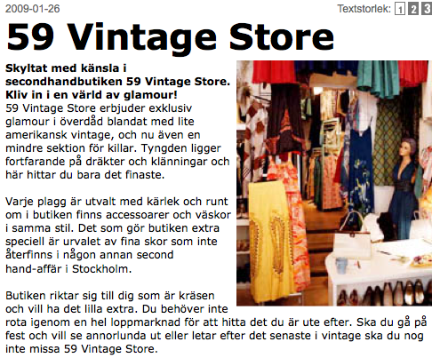 Älskar den här butiken, är ofta här och kollar lite vad jag kan ha råd med. Väldigt fina klänningar och accessoarer, lite mer åt det dyra hållet, men priserna reflekterar värdet av kläderna. så vill du ha riktigt äkta plagg från 20-80 talet så är det hit ni ska gå. Har själv köpt en underbar rosa sovlinne/neglige här. Här kan man sälja på kommission om man har kläder som passar in i det hon säljer här. 2012-04-06 kl. 13:22 -